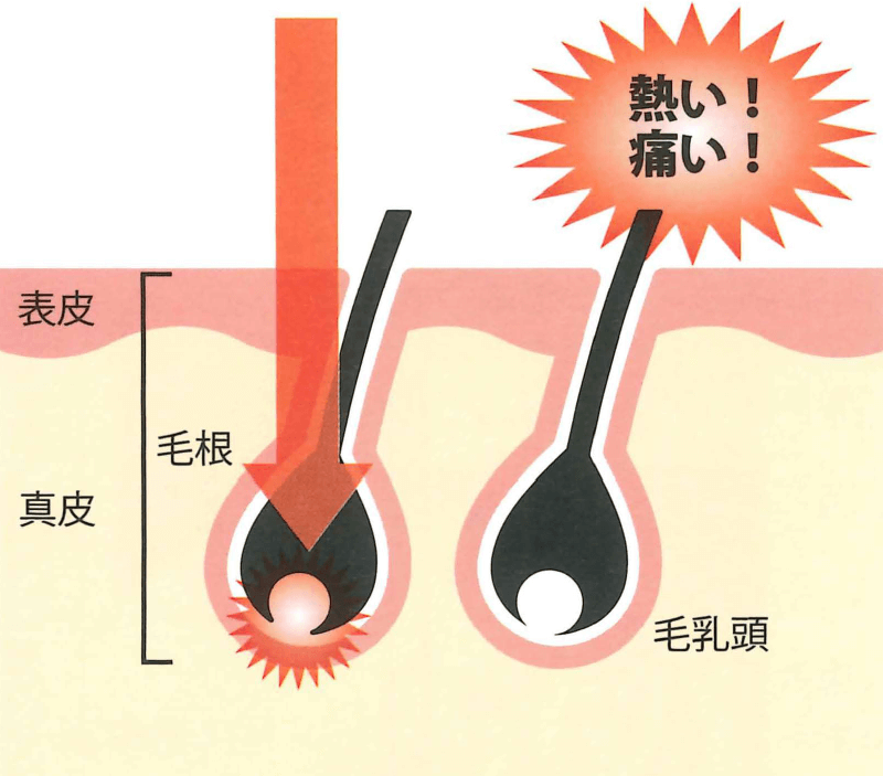 - 痛みと皮膚へのダメージが大きい高熱を1点集中させて処理するため、痛みを伴い、ヤケドによる炎症・シミという危険があります。